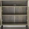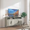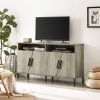 Farmhouse style TV Stand; TV station with storage and open drawers; entertainment center console table; living room media furniture.(Grey; 58''W*23.6''D*31.5''H)Pieces included1 TV StandSelling Point1.new style2.Multifunction3.large capacityDescription1. Farmhouse Style TV Station: This media console table features a rustic design; this TV console cabinet has 2 rear holes for easy cable management.2. Large storage space: The TV set has 2 storage compartments and 2 middle shelves that can be adjusted up and down. In addition to storing some electronic devices; it can also store some items that you can use at any time for easy access.3. Multifunctional: Can store your DVD player; speaker; game console; Xbox; PS4; AV components; magazines; trinkets; etc. At the same time it is a sofa table; an entry table or a sideboard.4. Sturdy and Stable: Made of high-density particleboard; with 6 support legs at the bottom; which ensures the stability and load-bearing capacity of this TV stand. Safe; environmentally friendly and sturdy.5. Assembly is a piece of cake: Assembly will not be your trouble; we provide detailed assembly instructions; each accessory has a clear label; you can assemble this TV stand in about 40 minutes.Product InformationProduct Type: TV StandColor: GreyMaterial: Particleboard+ironProduct Size: 58''W*23.6''D*31.5''HTop Weight Capacity: 200LBS(uniform distribution)Intermediate layer Weight Capacity: 50LBS(uniform distribution)Bottom Weight Capacity: 200LBS(uniform distribution)bottom support leg:6Assembly Required: About 40 minPackage Number: 1Notice1.Real Product's Color may be a little different from the image due to the lighting or monitor's display.2.Manual measurement has been used; there may be some reasonable error.3.Liquids should be immediately blotted with a damp cloth. Do not use surface cleaners that could remove the finish. 4.Hardware may loosen over time; periodically check to make sure all connections are tight.