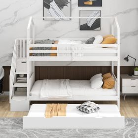 Multifunctional Twin over Twin House Bunk Bed with Staircase and Storage Space (Color: White)