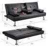 MEGA Futon Sofa Bed; Modern Faux Leather Convertible Folding Lounge Sofa for Living Room with 2 Cup Holders Removable Soft Armrests and Sturdy Metal L