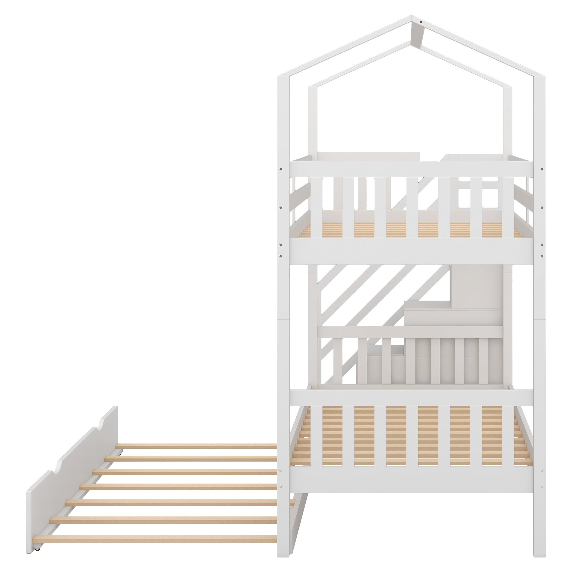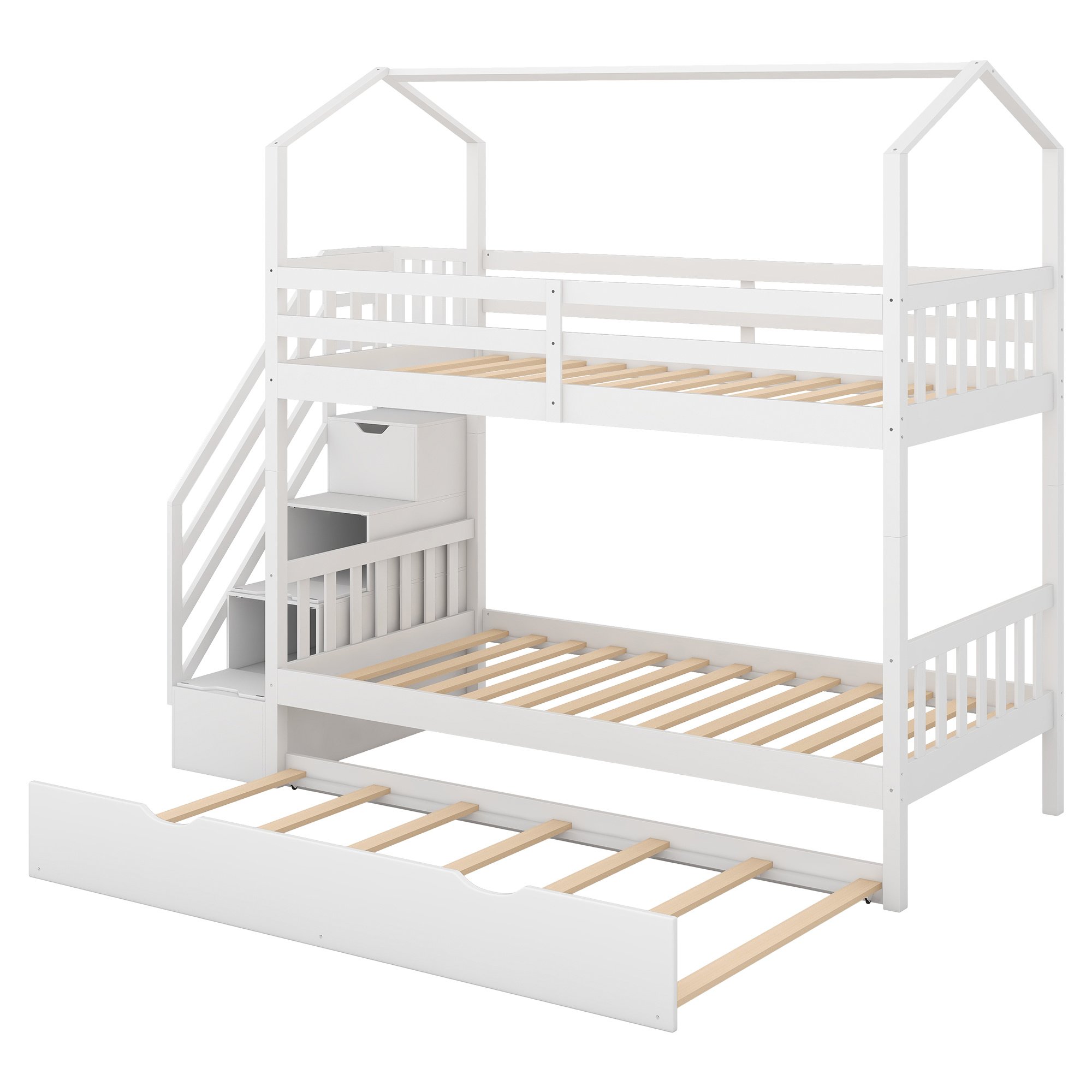 Multifunctional Twin over Twin House Bunk Bed with Staircase and Storage Space