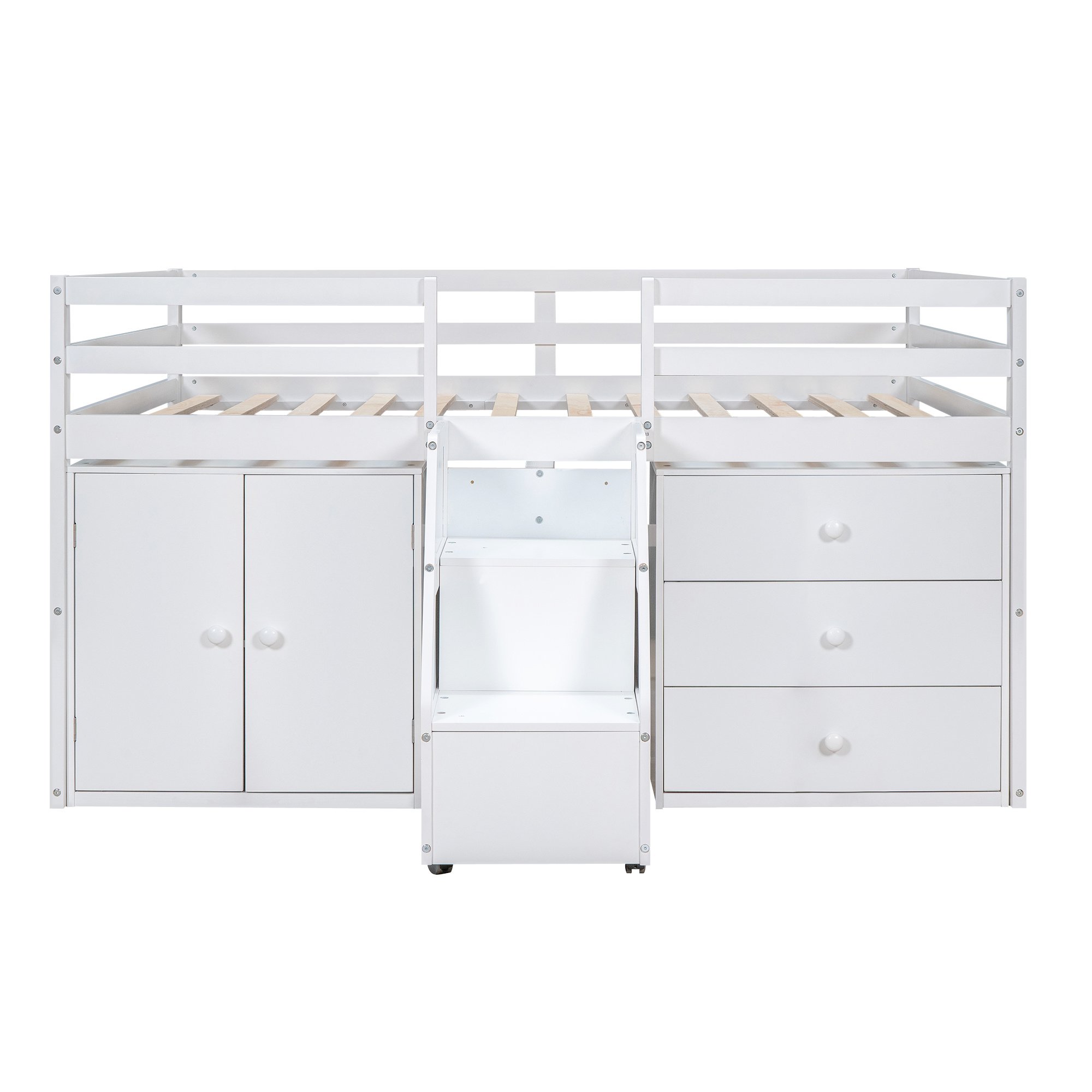 Full Size Functional Loft Bed with Cabinets and Drawers; Hanging Clothes at the back of the Staircase