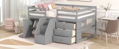 Full Size Functional Loft Bed with Cabinets and Drawers; Hanging Clothes at the back of the Staircase