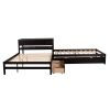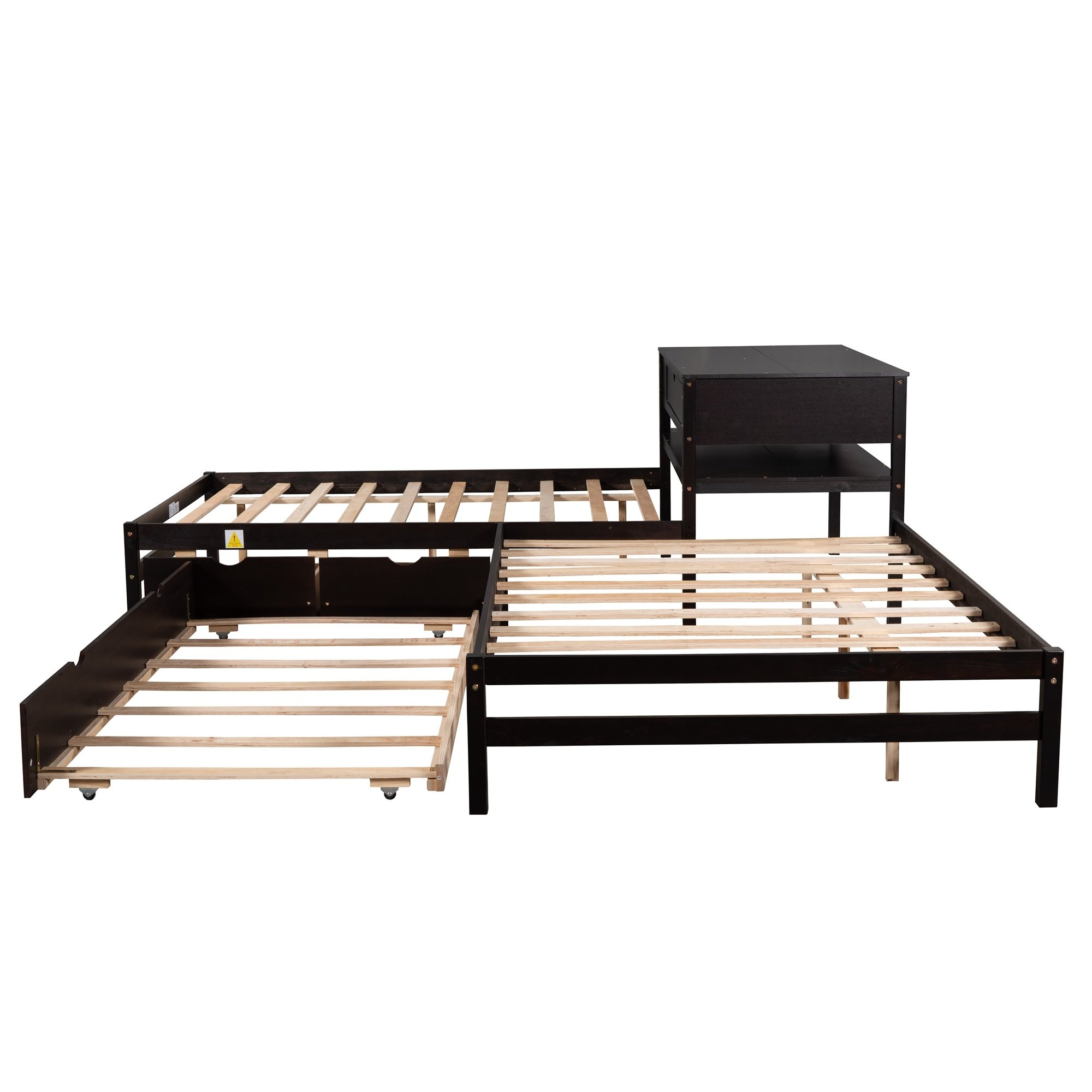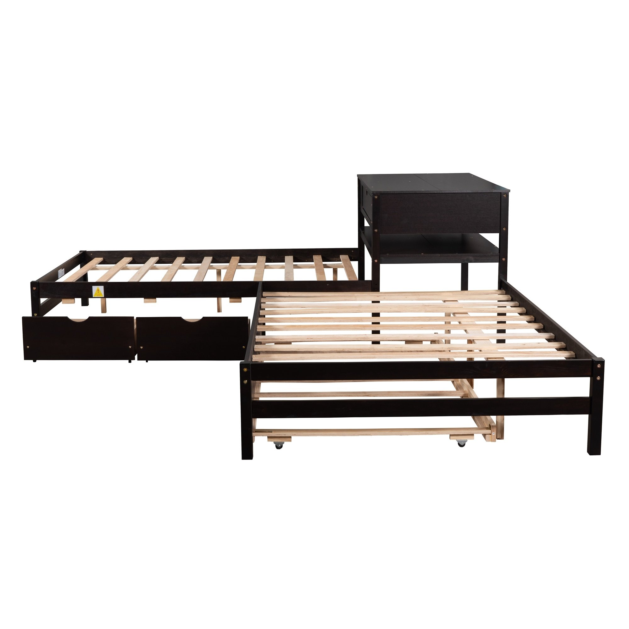 Full Size L-shaped Platform Beds with Twin Size Trundle and Drawers Linked with Built-in Rectangle Table