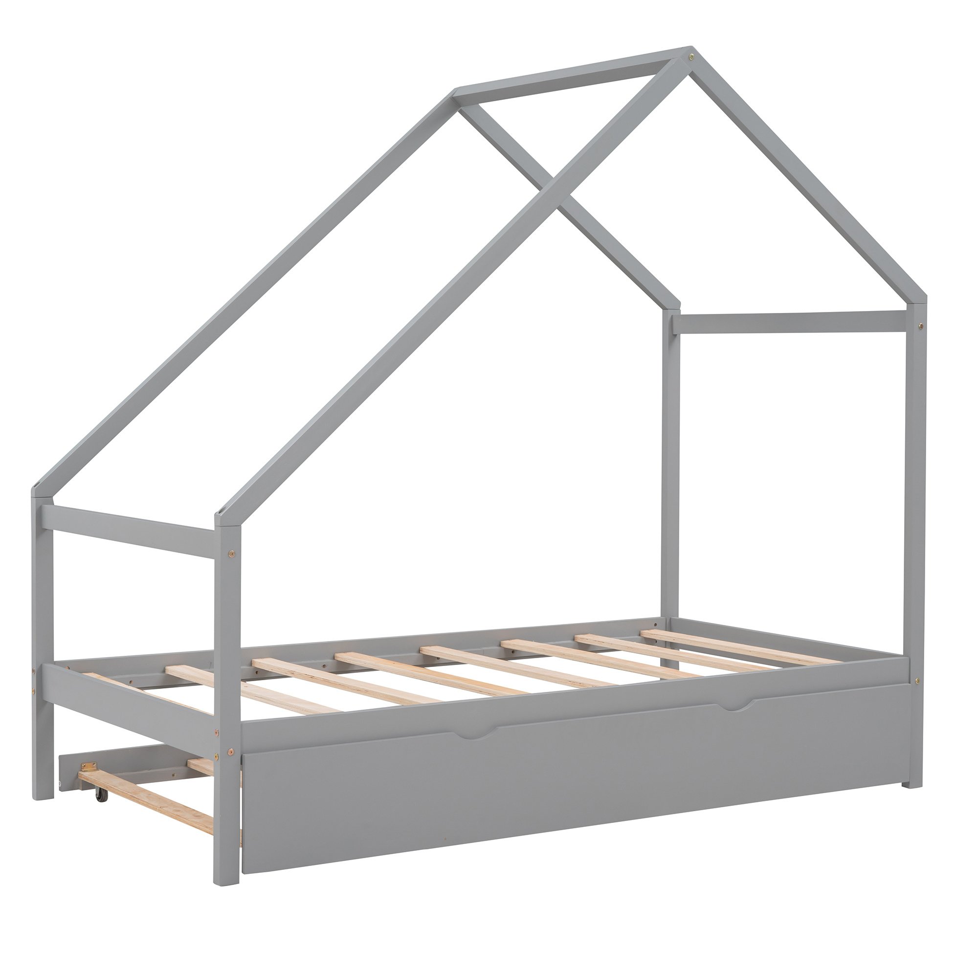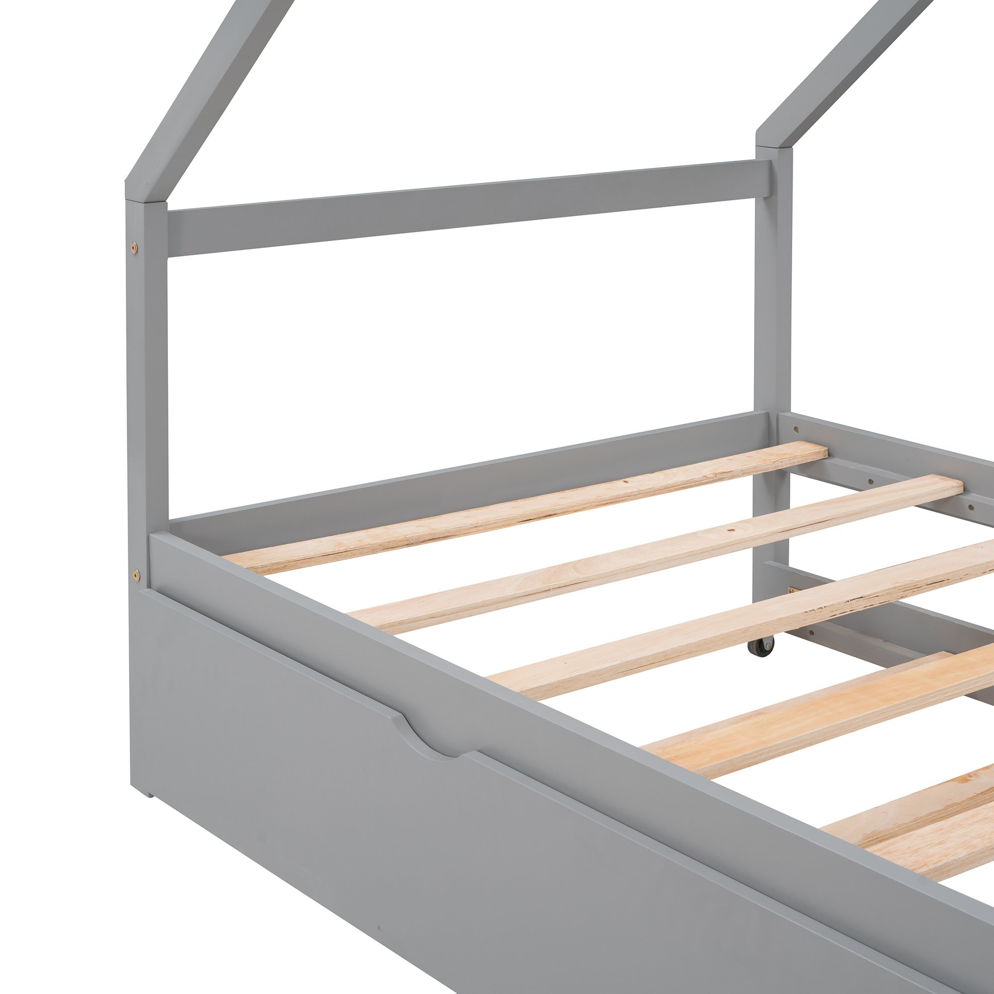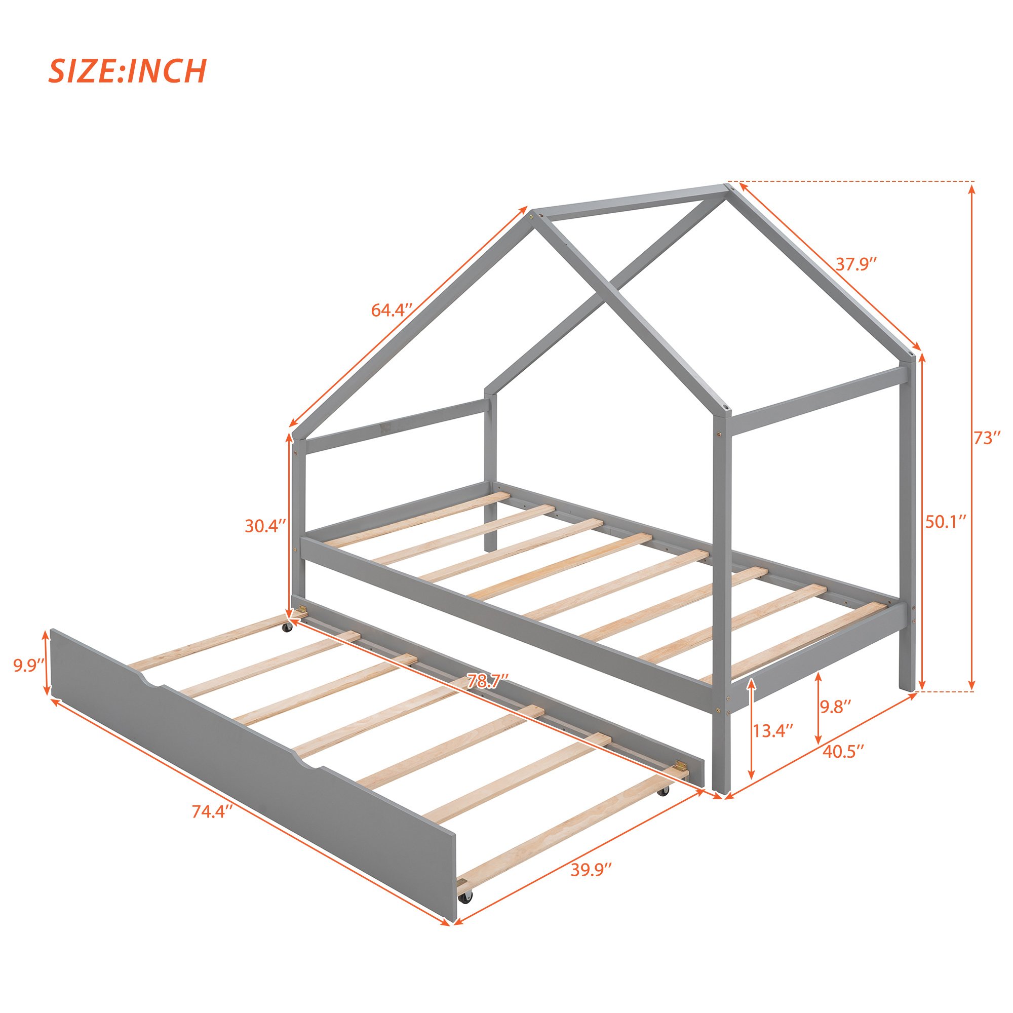 Home > Twin Size Wooden House Bed With Twin Size Trundle