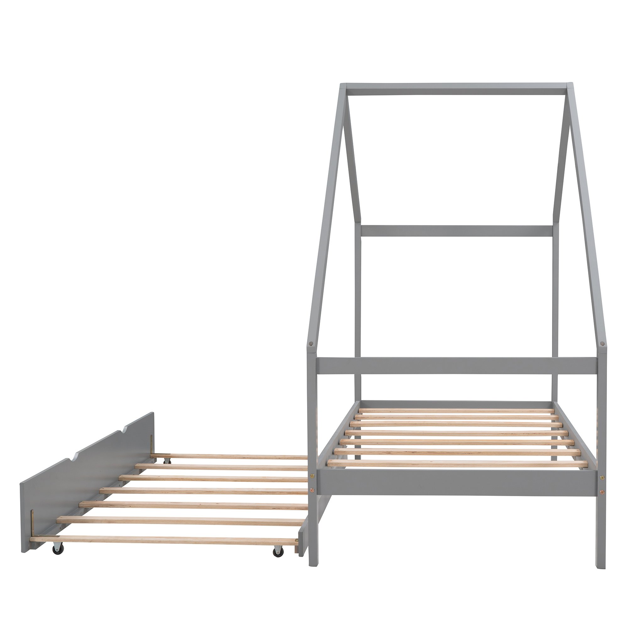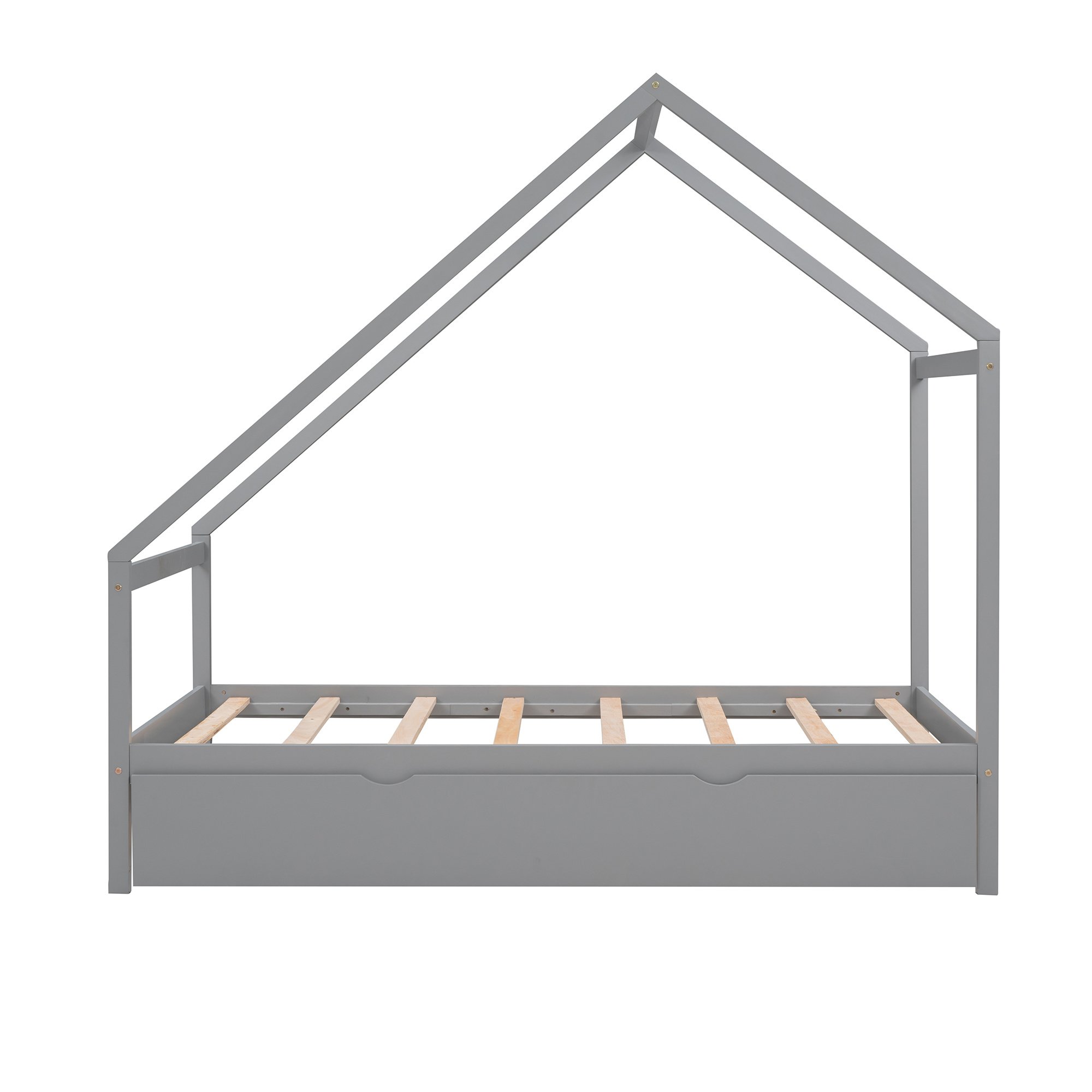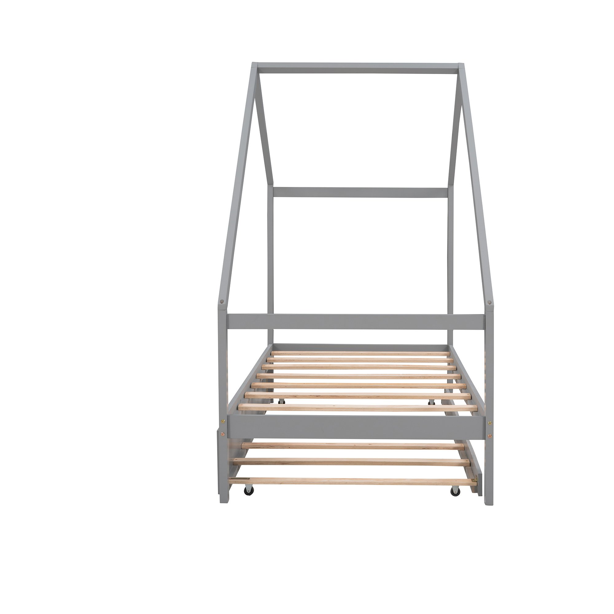 Home > Twin Size Wooden House Bed With Twin Size Trundle
